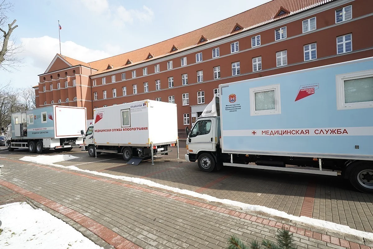 Осенью 2020 года в регион поступили рентген-кабинет для Гусевской центральной районной больницы, мобильный центр «детское здоровье» для Городской детской поликлиники № 6, передвижной кабинет для Советской стоматологической поликлиники и маммограф для Черняховской ЦРБ. Средства на их приобретение в размере 67,7 миллионов рублей были направлены из федерального и регионального бюджетов.